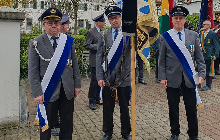 Fahnenabordnungen im Bild zweiter von rechts 1. Vorstand Gernot Keller