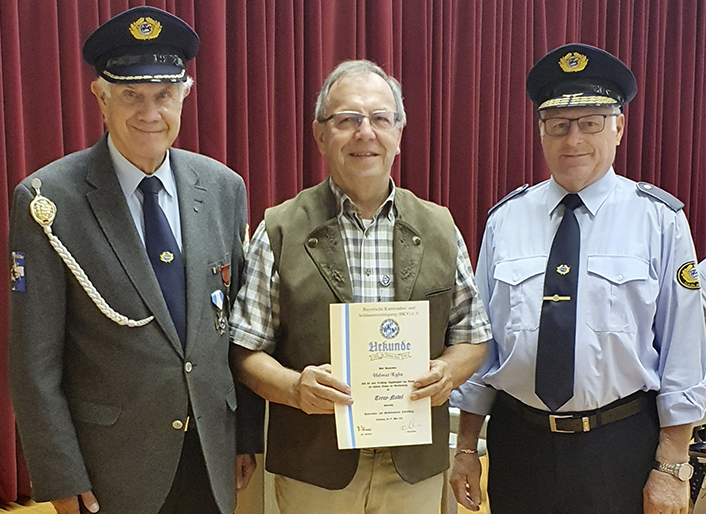 das Treuekreuz in Gold der Bayerischen Kameraden- und Soldatenvereinigung, wurde Ehrenmitglied und letztem Kriegsteilnehmer des Vereins Andreas Heindl für seine 65-jährige Zugehörigkeit zum Verein zuteil. Leider konnte dieser die Ehrung aus gesundheitlichen Gründen nicht persönlich entgegennehmen. Die Auszeichnung wurde
