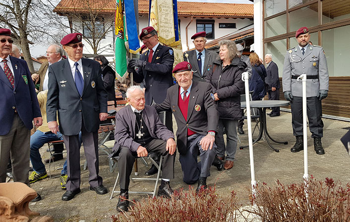 Am 21. Mai 1941 ist Hermann Völck nach seinem Fallschirmabsprung auf Kreta gelandet. Nach 3jähriger Gefangenschaft in Monte Cassino studierte er nach dem Krieg Philosophie, Psychologie und Theologie und erhielt im Jahr 1960 die Priesterweihe. Er war Militärpfarrer bei den FschJg- und Gebirgsjägern der Bundeswehr, Pfarrer von Altstädten und feierte am Sonntag, den 7. April 2019 seinen 100sten Geburtstag. Die Feier begann mit einem Gottesdienst in St. Ulrich in Seeg, zelebriert von Dekan Deuring und Pfarrer Schnabel. Anschließend erfolgte ein Empfang im Festsaal des Gemeindezentrums. Der KSV Lützelburg wurde vertreten durch seinen 1. Vorsitzenden Gernot Keller mit Vereinsfahne. Die Fahnenbegleitung wurde gestellt durch Fallschirmjäger der Bundeswehr.